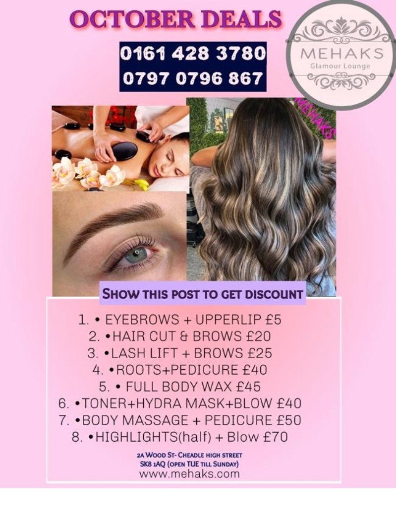 We are ready to call out call out for bridal or group bookings for makeovers. Contact on 07970796867 and also follow us on Instagram https://instagram.com/mehaksglamourlounge?igshid=bzylojyeljz6